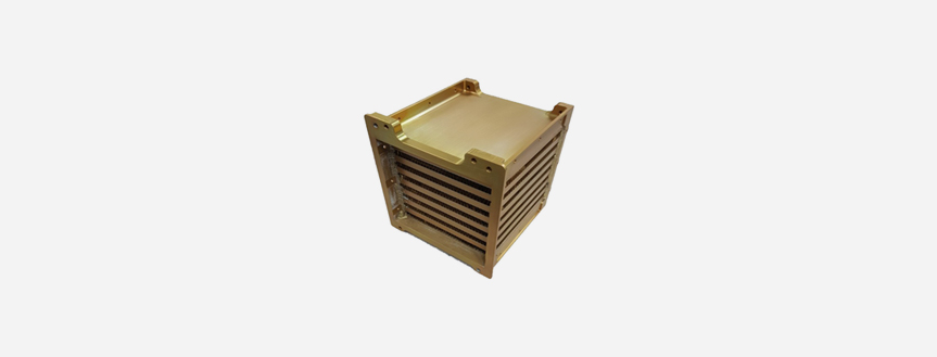 열교환기조립체는 POD에서 회수되는 고온의 공기와 터빈으로부터 토출된 저온의 공기의 상호 열교환을 하기 위한 장치이다. 장착 구조를 제외한 열교환기 코어(Core)는 고온의 공기가 흐르는 유로(이하 Hot side) 및 저온의 냉각 공기가 흐르는 유로(이하 Cold side)가 직교하는 형태로 배열되어 있다.